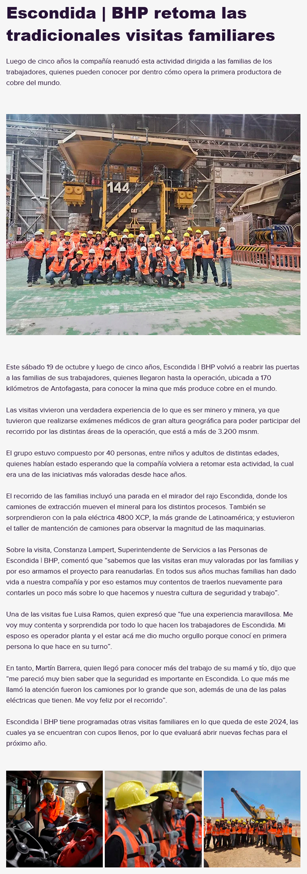 BHP reanuda visitas familiares en mina Escondida - (antofagasta.cl)
