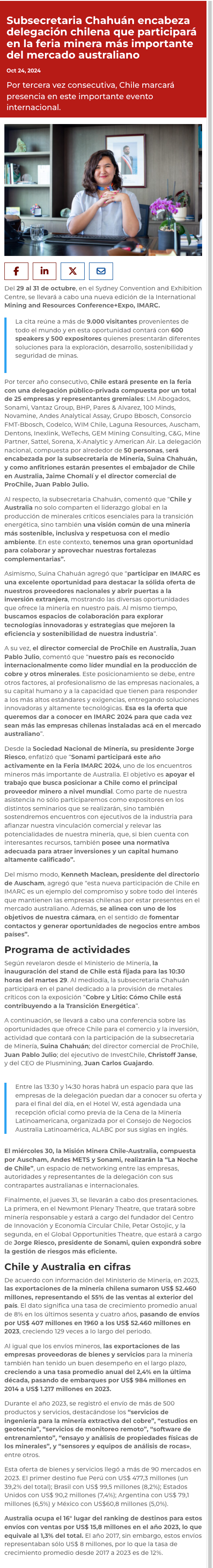 Subsecretaria Chahuán encabeza delegación chilena que participará en Imarc, la feria minera más importante del mercado australiano - (chilemineria.cl)
