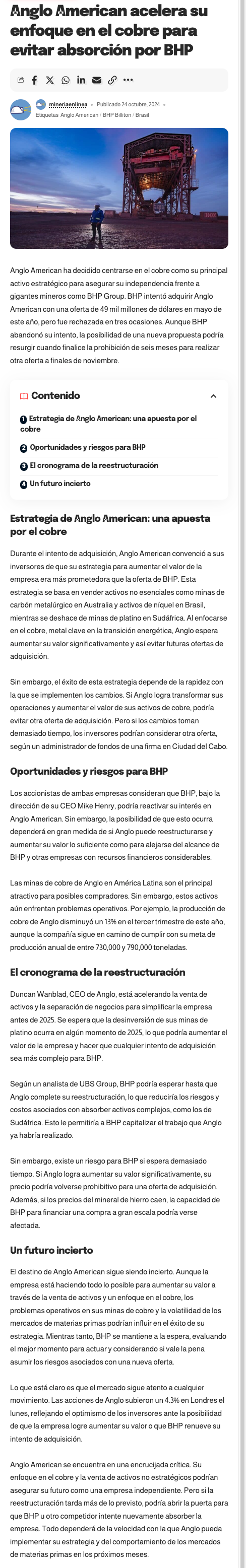 Pese a caída en producción de cobre, Anglo American mantiene proyección para 2024 - (tendenciashoy.cl)