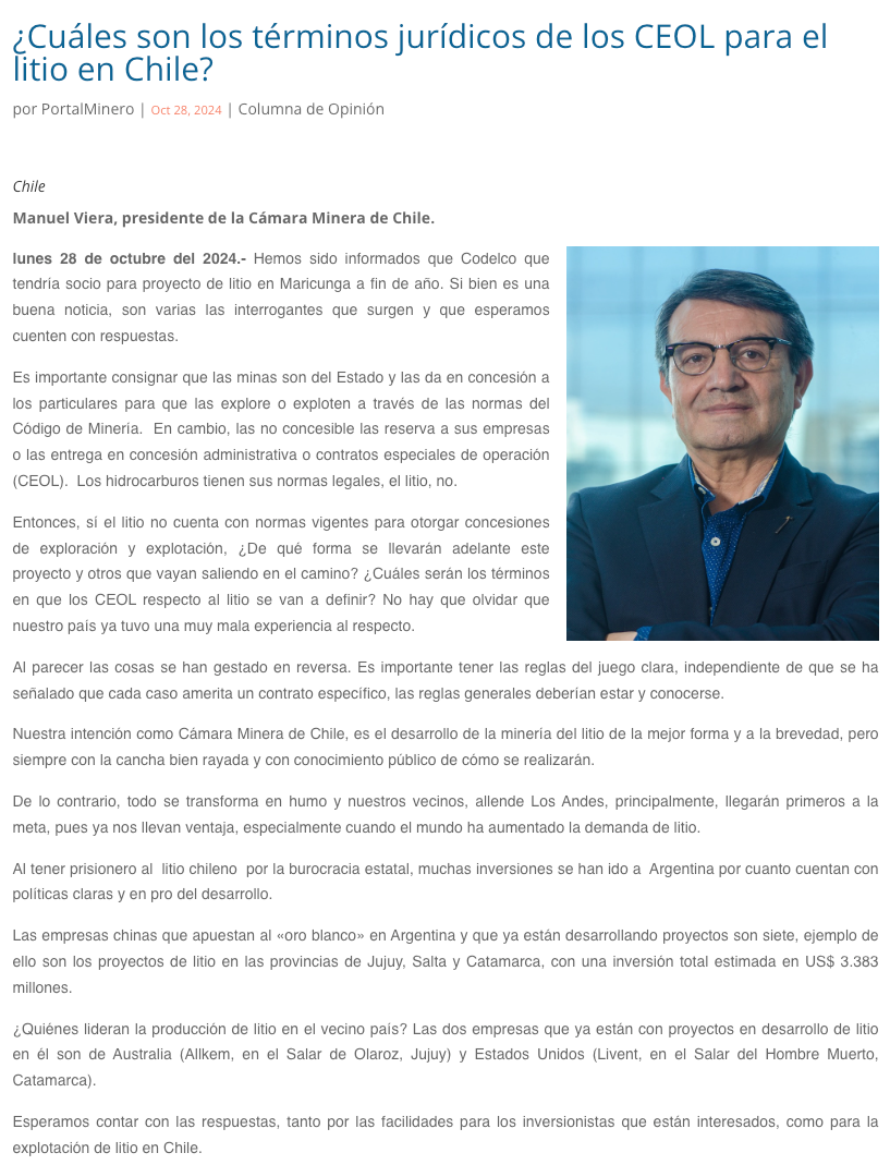 ¿Cuáles son los términos jurídicos de los CEOL para el litio en Chile? - (cooperativa online)