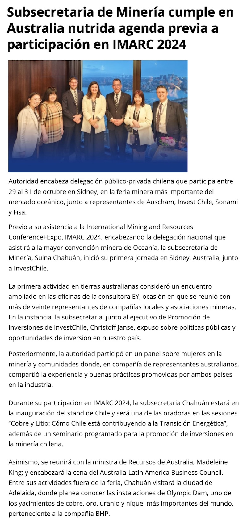 Subsecretaria Chahuán cumple en Australia nutrida agenda previa a participación en Imarc 2024 - (nuevaminería online)