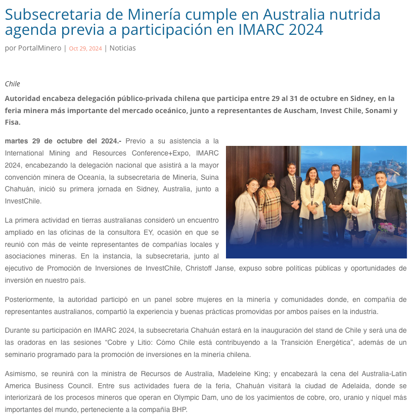 Subsecretaria Chahuán cumple en Australia nutrida agenda previa a participación en Imarc 2024 - (nuevaminería online)