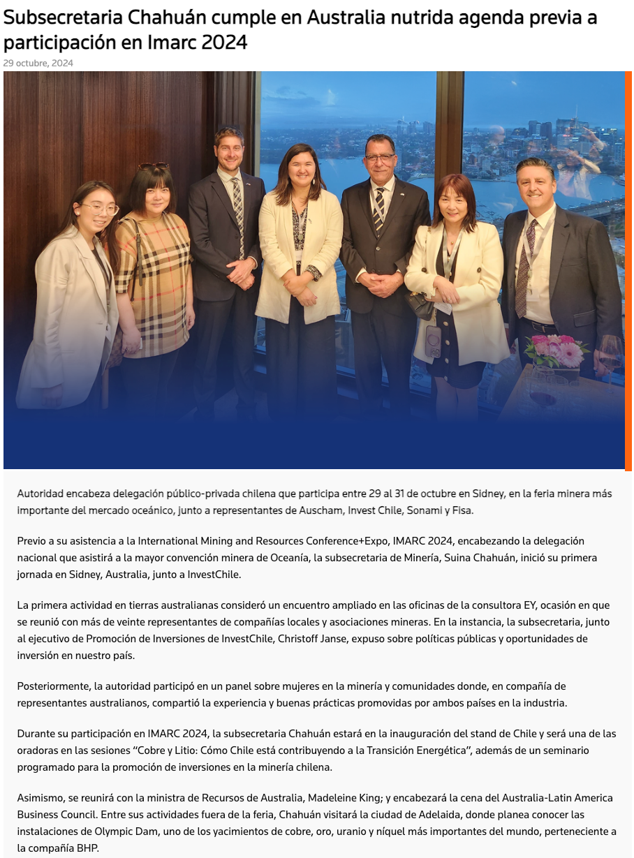 Subsecretaria de Minería cumple en Australia nutrida agenda previa a participación en IMARC 2024 - (Nostálgica Online)