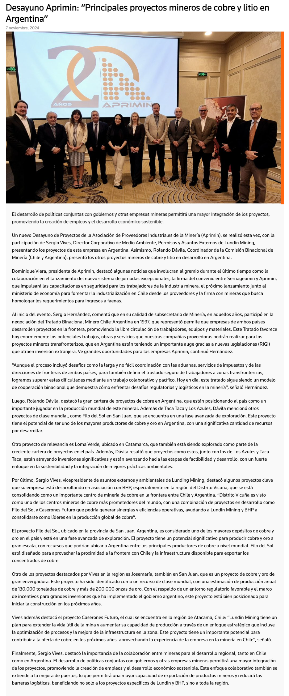 Desayuno Aprimin: "Principales proyectos mineros de cobre y litio en Argentina" - (Nostálgica Online)