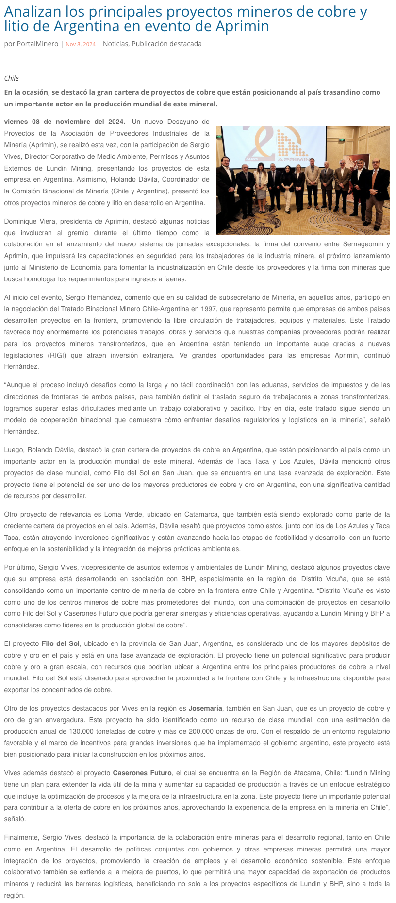 Desayuno APRIMIN: “Principales proyectos mineros de cobre y litio en Argentina” - (mvcomunicaciones.cl)