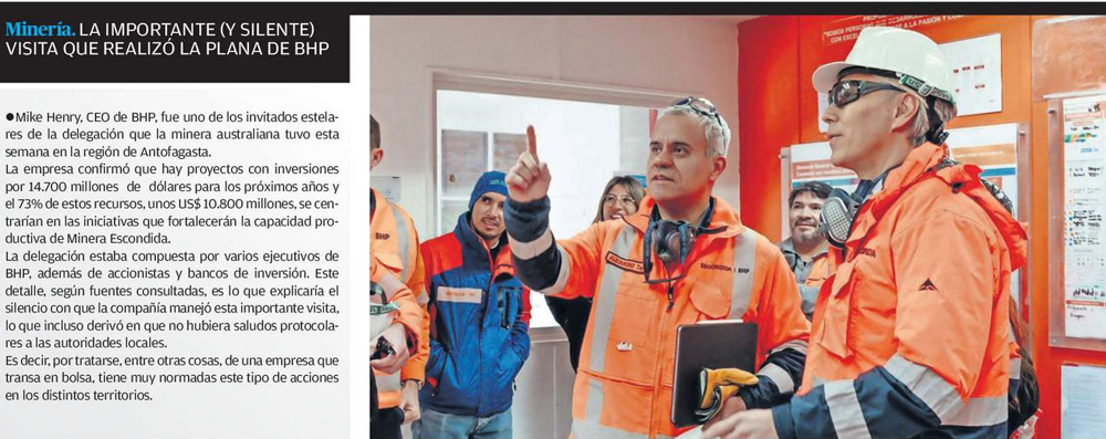 La importante (y silente) visita que realizó la plana de BHP - (El Mercurio de Antofagasta)