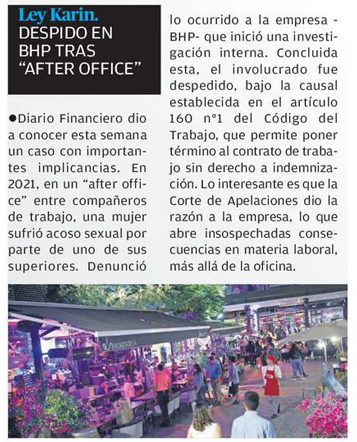 Ley Karin: Despidos en BHP tras “after office” - (El Mercurio de Antofagasta)