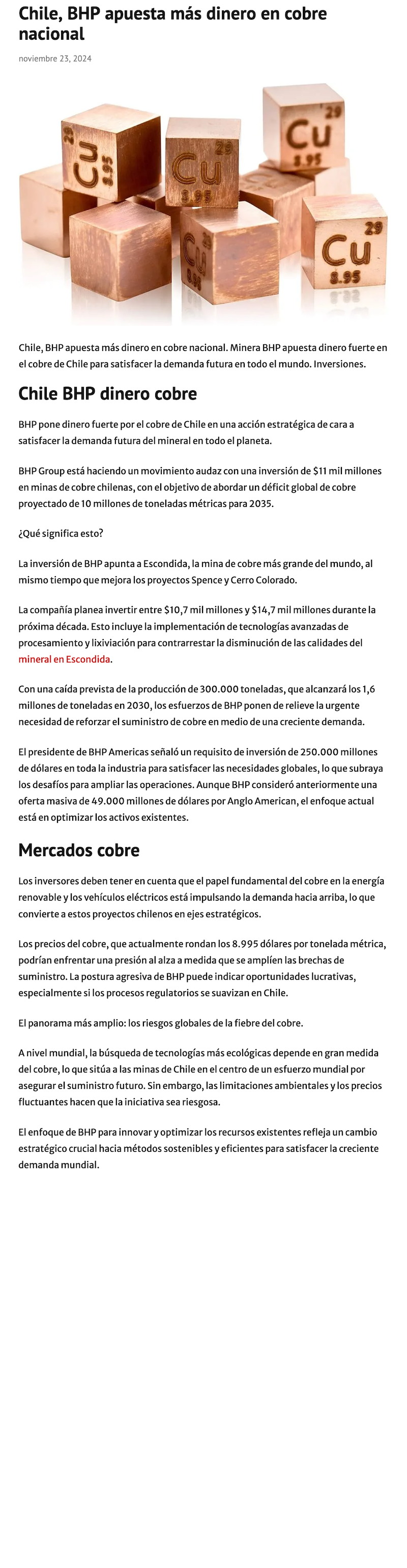Inversiones millonarias de BHP en Chile para cubrir déficit de cobre - (redimin)