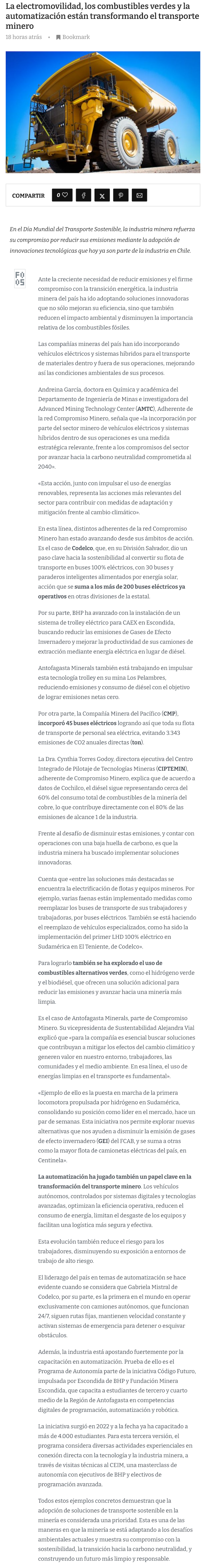 La electromovilidad, los combustibles verdes y la automatización transforman a la minería - (El Mercurio de Calama)