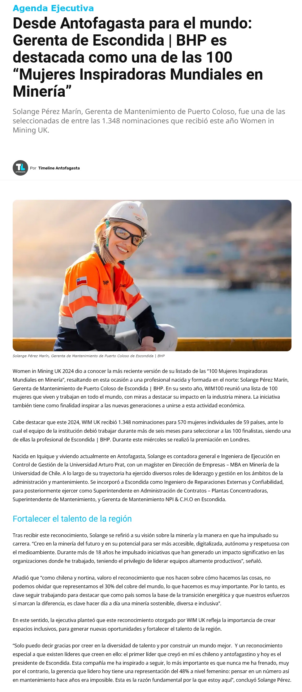Profesional de Escondida es destacada en el Reino Unido como Mujer Inspiradora - (El Mercurio de Calama)