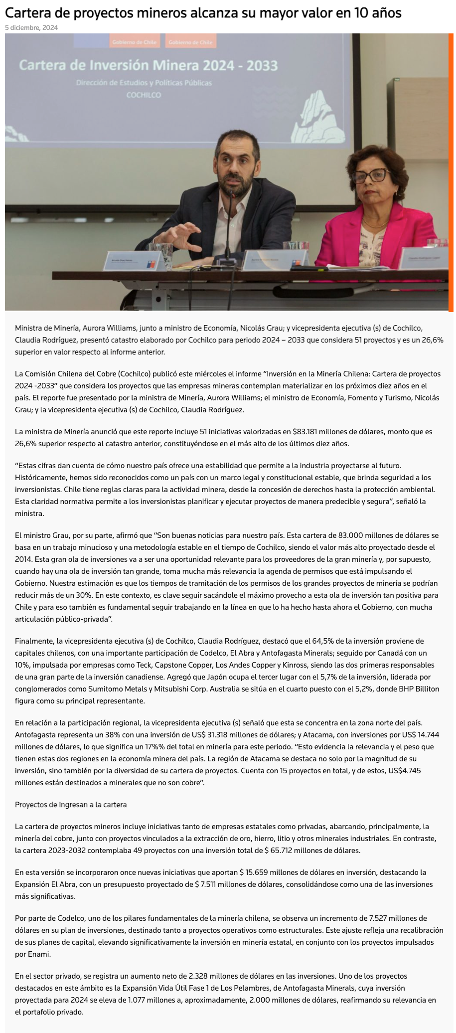 US$83.181 millones a 2033: Cartera de proyectos mineros alcanza su mayor valor en 10 años - (emol)