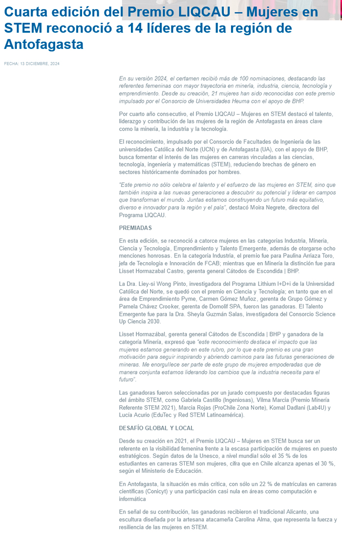 Cuarta edición del Premio LIQCAU – Mujeres en STEM reconoció a 14 líderes de la Región de Antofagasta - (termometro.cl)