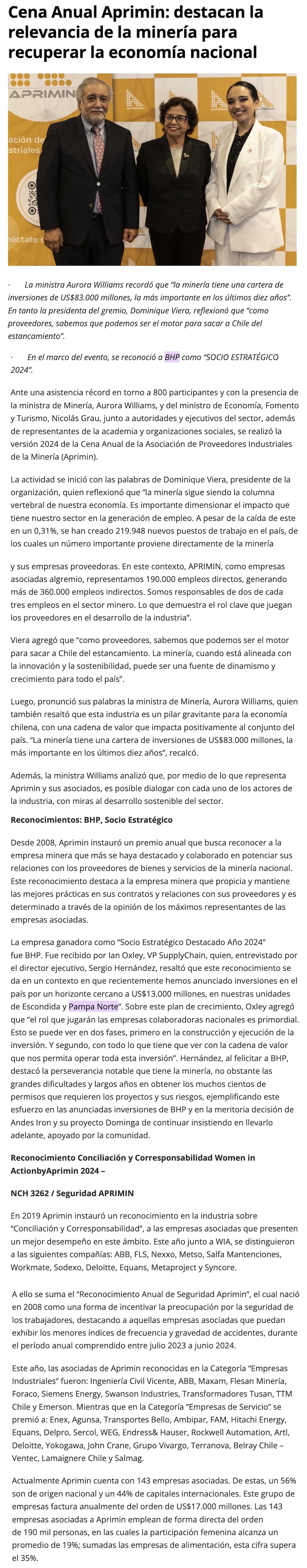 Cena Anual Aprimin: destacan la relevancia de la minería para recuperar la economía nacional - (mvcomunicaciones.cl)