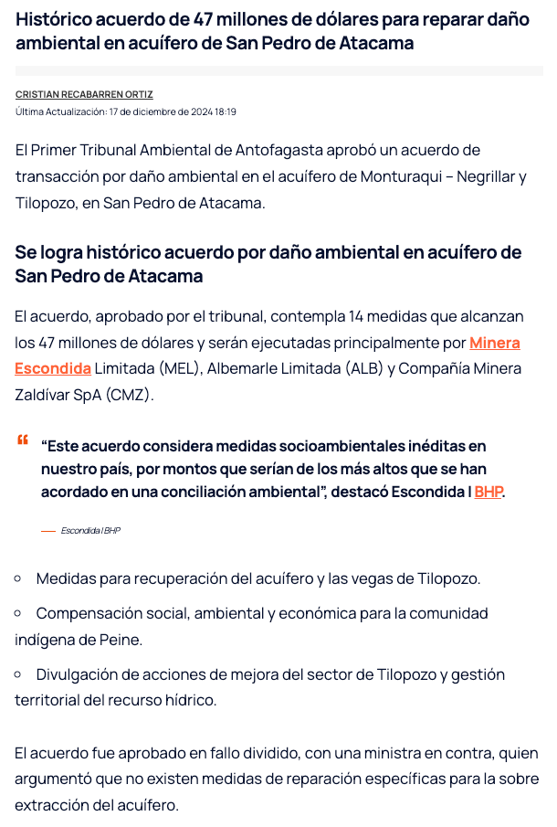 Por dañar acuífero en Salar de Atacama 3 grandes mineras demandadas invertirán $47 mil millones para restaurarlo - (eldesconcierto)