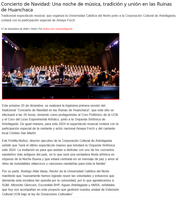 Invitan a la comunidad antofagastina al tradicional Concierto de Navidad en las Ruinas de Huanchaca - (noticias.ucn.cl)