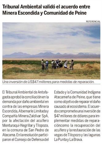 Acuerdo entre Minera Escondida y comunidad de Peine validado por Tribunal Ambiental - (antofagasta.cl)
