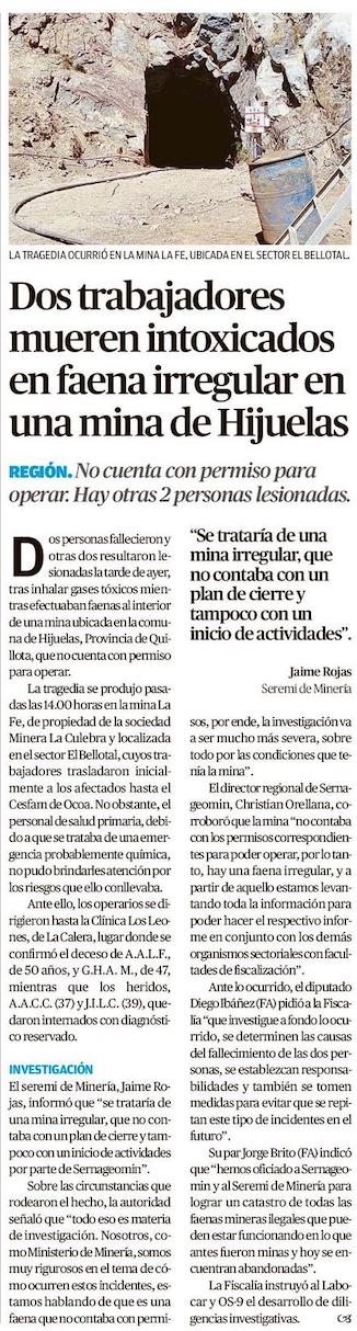 Mina ilegal donde se generó emergencia química que dejó dos muertos había sido denunciada en noviembre - (t13.cl)