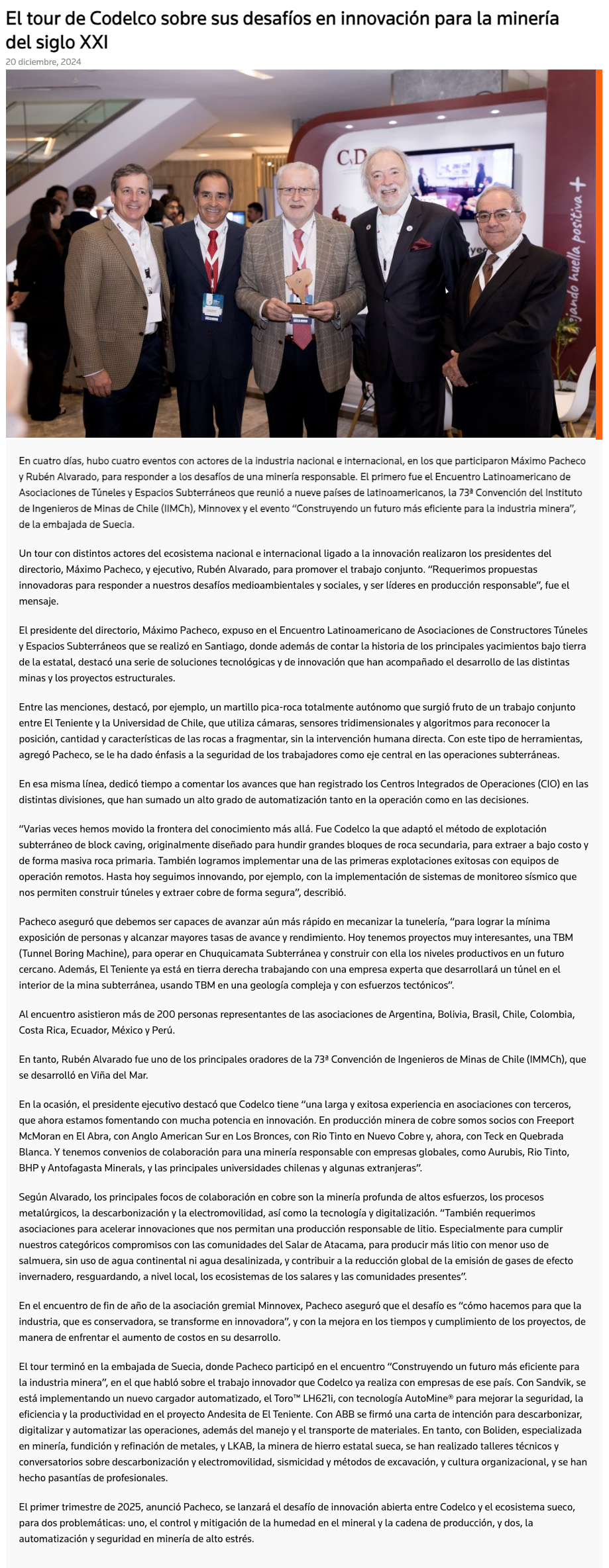 Codelco expone sobre los desafíos en innovación para la minería del siglo XXI - (portalminero)