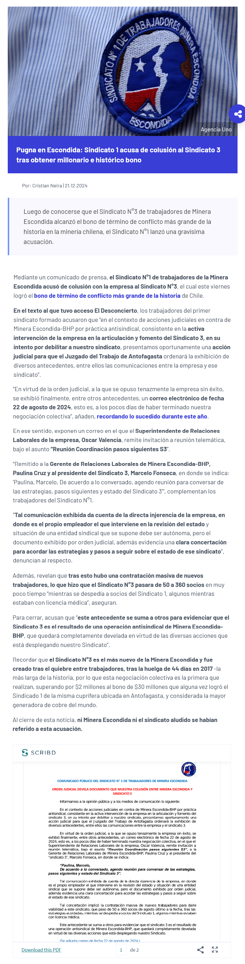 “Para conversar de las estrategias”: Denuncian colusión entre Minera Escondida y sindicato 3 de MEL - (resonanciadiario.cl)