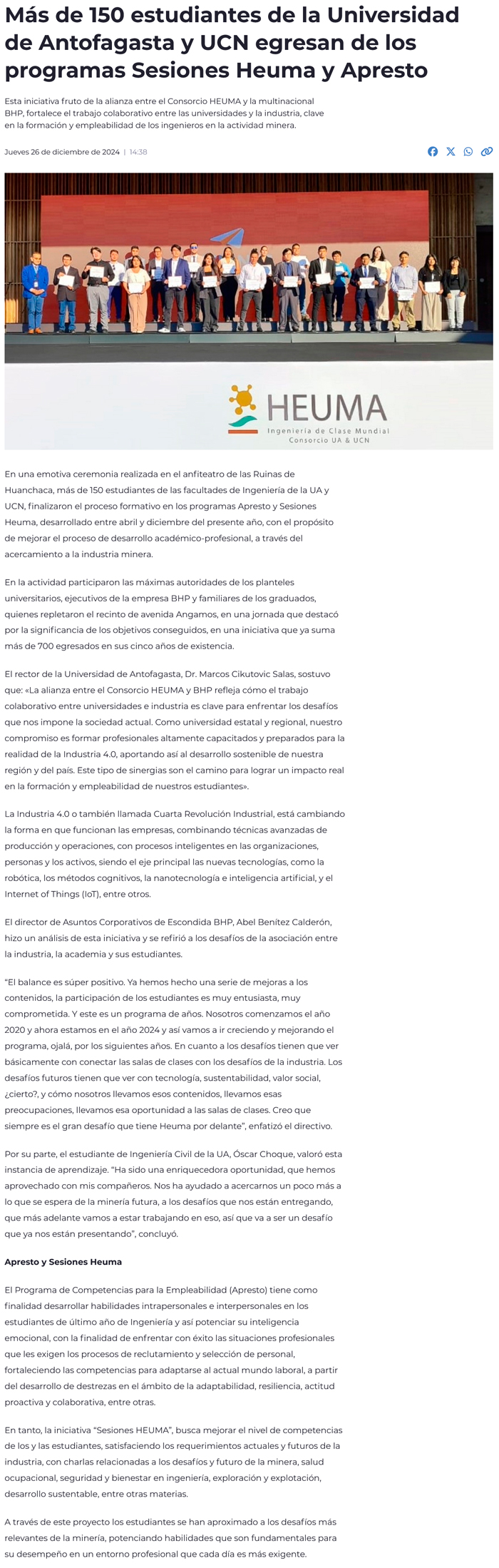 BHP y HEUMA cierran año potenciando a más de 100 futuros ingenieros de la región - (timeline)