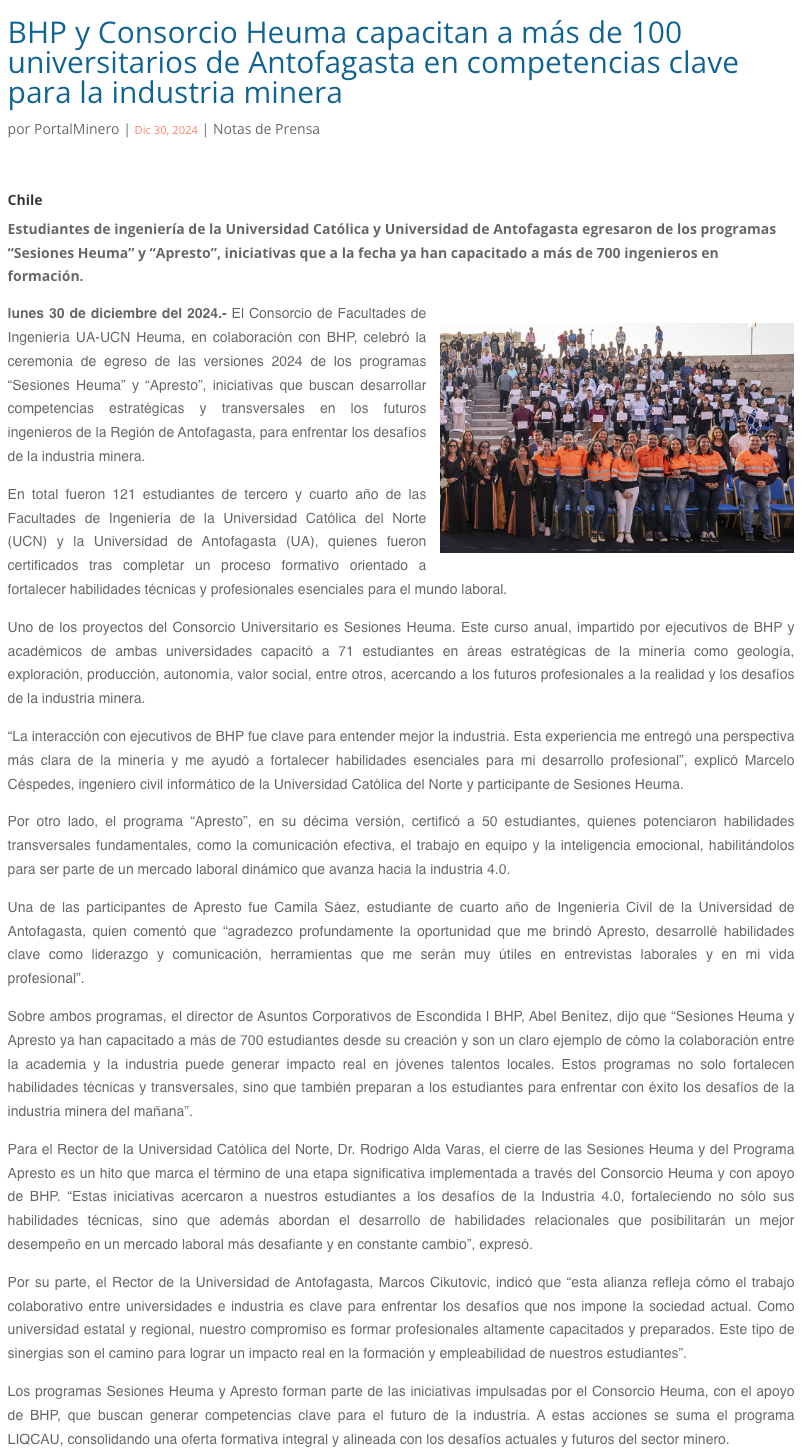 Consorcio HEUMA y BHP capacitan a más de 100 universitarios de Antofagasta en competencias clave para la industria minera - (norteyenegia.cl)