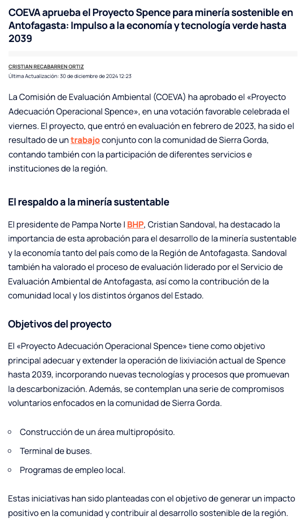 Comisión de Evaluación Ambiental aprueba EIA del proyecto para el crecimiento de Spence - (reporteminero)
