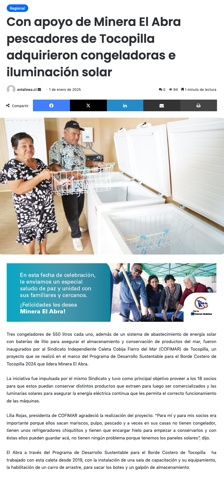 Con apoyo de El Abra pescadores de Tocopilla adquirieron congeladoras e iluminación solar - (elamerica)