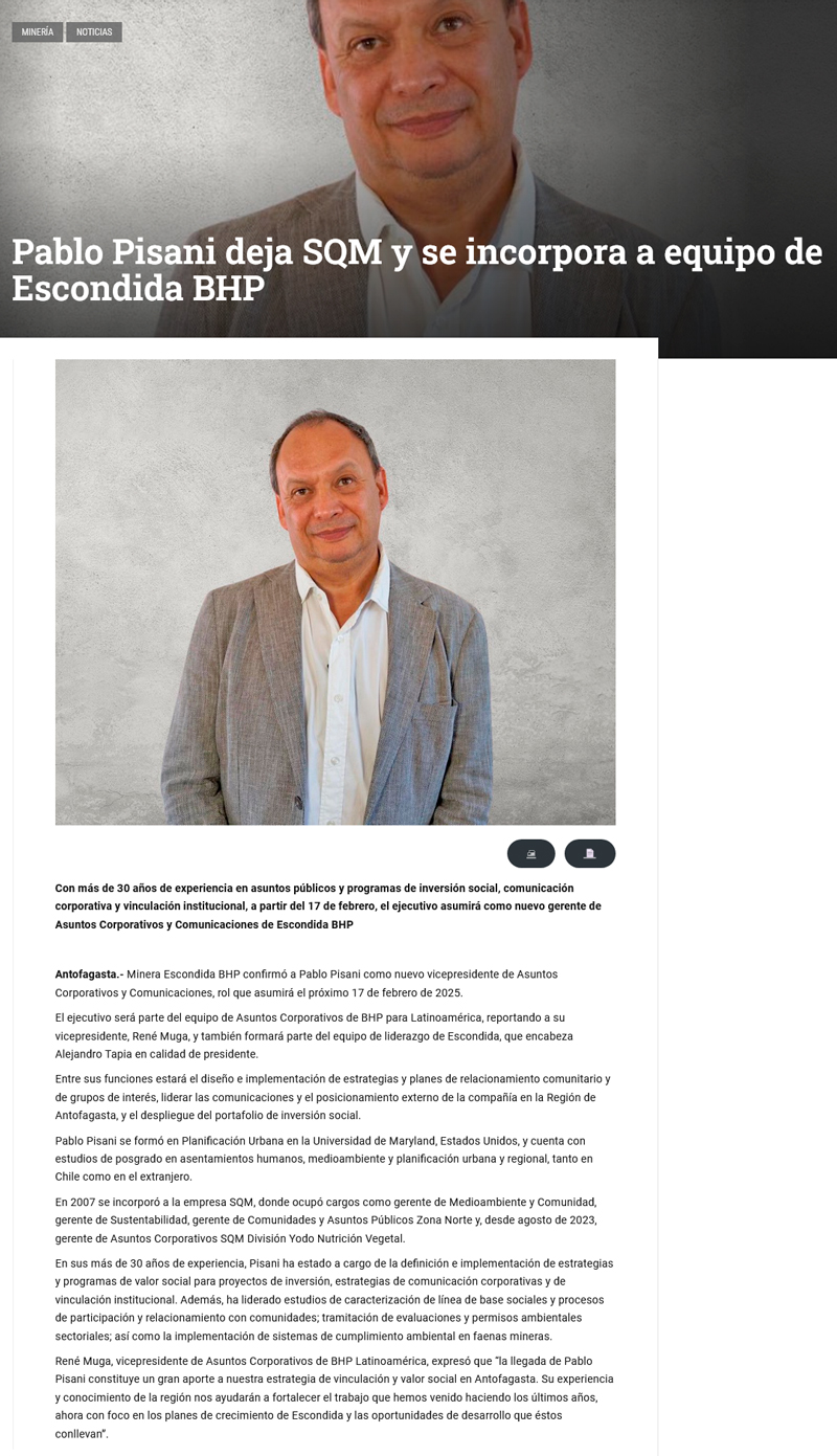 Escondida confirma a Pablo Pisani como nuevo vicepresidente de Asuntos Corporativos y Comunicaciones - (regionesnoticias.cl)