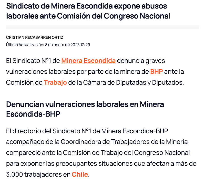 Sindicato N°1 de Minera Escondida expone vulneraciones laborales ante diputados - (reporteminero)