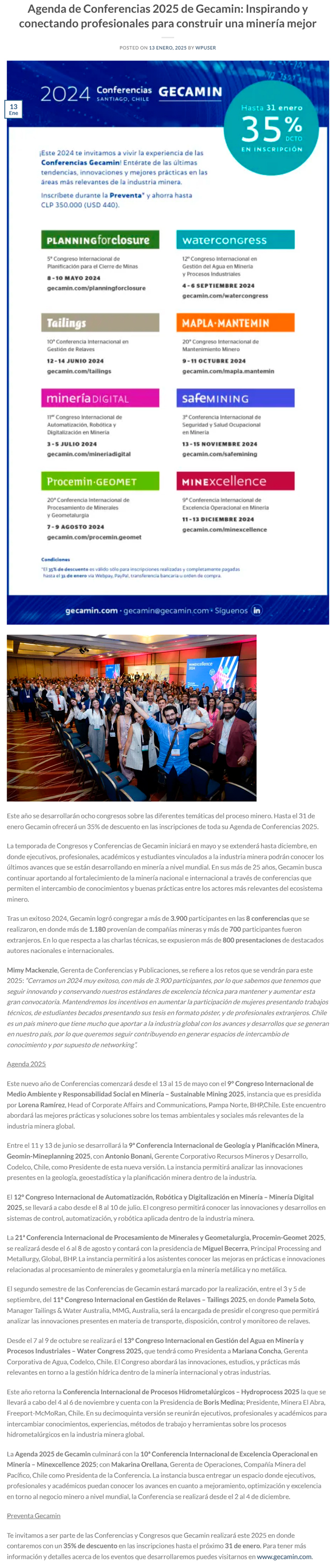 Agenda de Conferencias 2025 de Gecamin: Inspirando y conectando profesionales para construir una minería mejor - (portalinnova.cl)