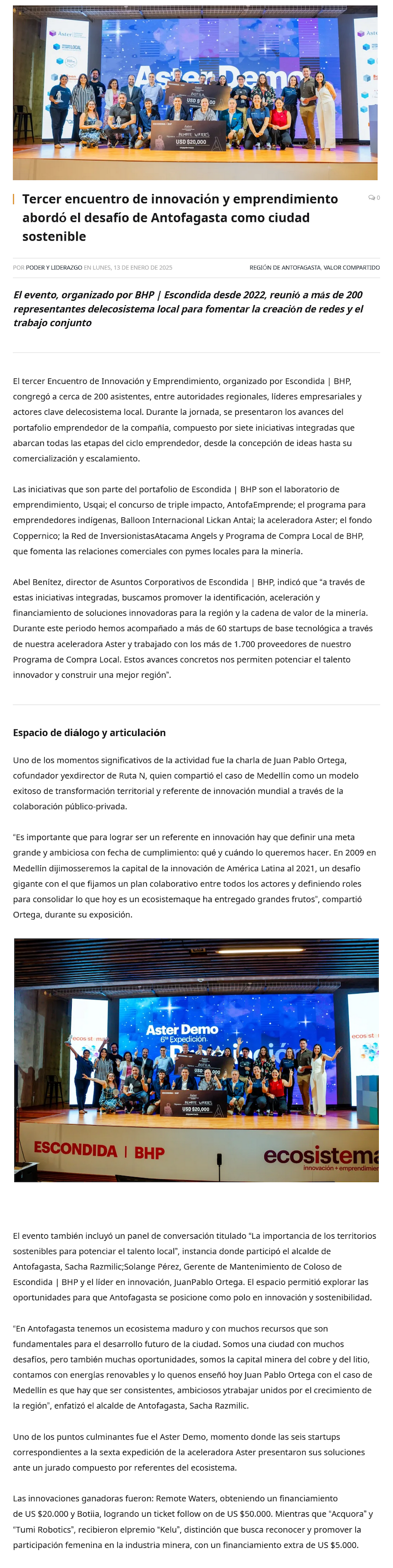 3er. encuentro de innovación y emprendimiento de Escondida abordó desafíos de Antofagasta de ciudad sostenible - (revistacrisol.cl)