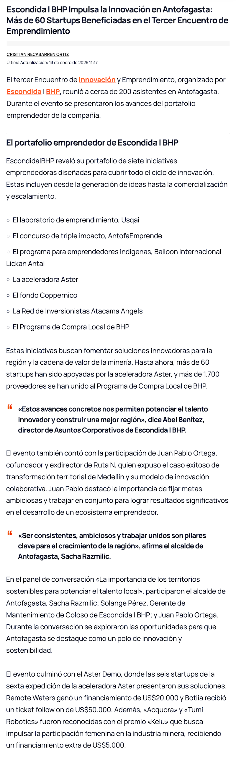 3er. encuentro de innovación y emprendimiento de Escondida abordó desafíos de Antofagasta de ciudad sostenible - (revistacrisol.cl)