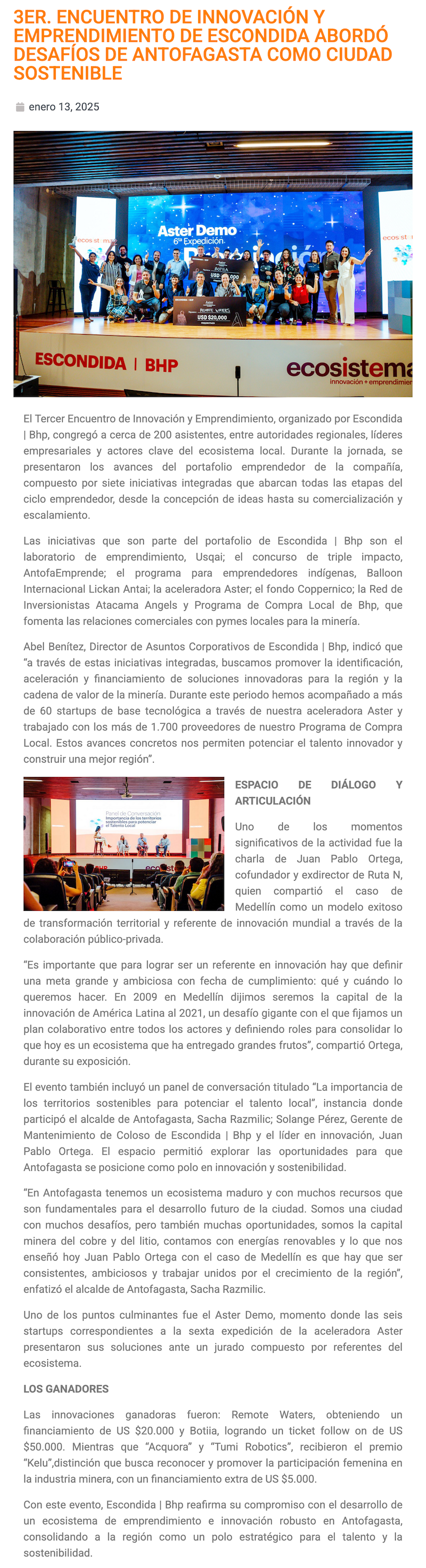 Escondida | BHP Impulsa la Innovación en Antofagasta: Más de 60 Startups Beneficiadas en el Tercer Encuentro de Emprendimiento - (redimin)