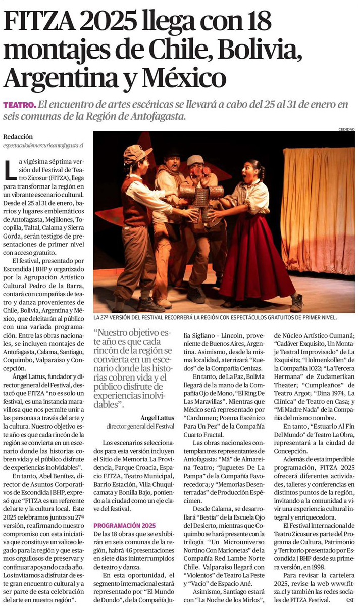 FITZA 2025 llega con 18 montajes de Chile, Bolivia, Argentina y México - (El Mercurio de Calama)