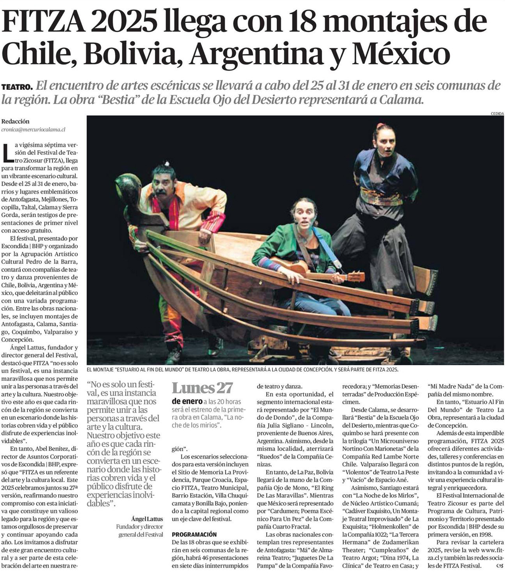 FITZA 2025 llega con 18 montajes de Chile, Bolivia, Argentina y México - (El Mercurio de Antofagasta)