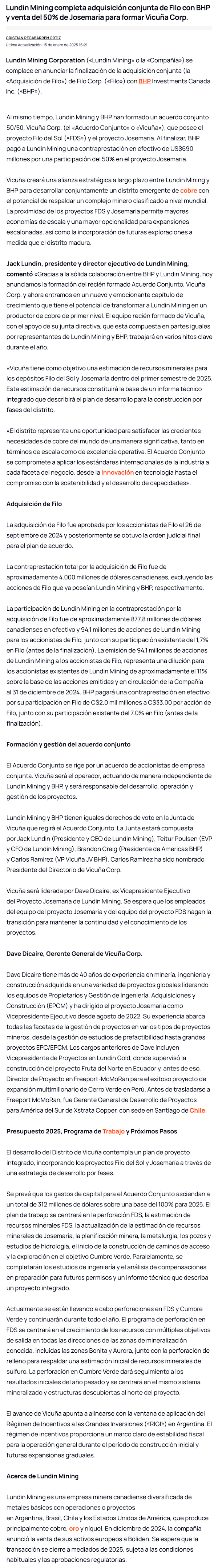 BHP y Lundin completan la adquisición de Filo Corp - (rumbominero.com (Perú))