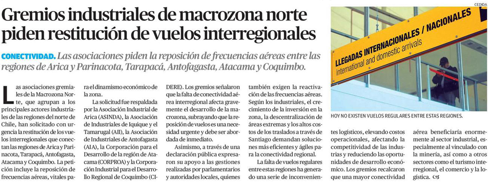 Gremios apuntan que es "urgente" reanudar la conectividad aérea entre las regiones de la Macrozona Norte - (El Diario de Atacama)