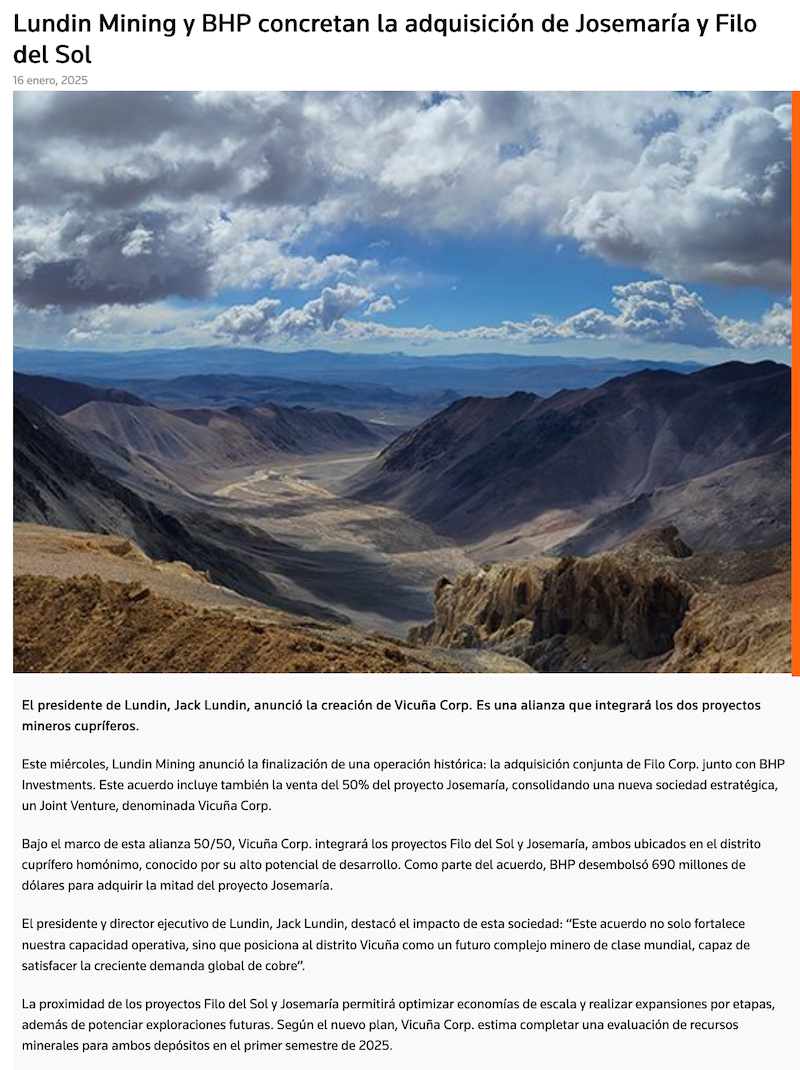 Lundin Mining y BHP completan la adquisición de Filo - (reporteminero)