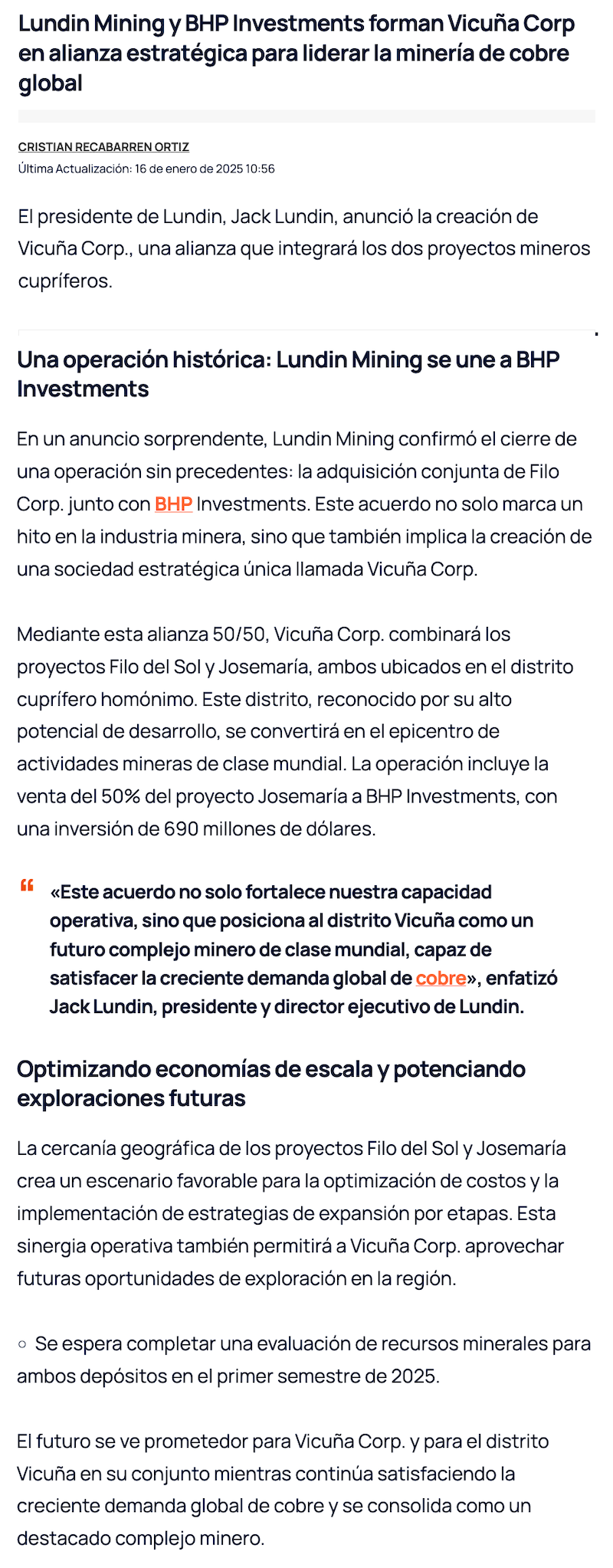 Lundin Mining y BHP Investments lanzan Vicuña Corp en alianza estratégica de $690 millones para dominar la minería de cobre - (redimin)