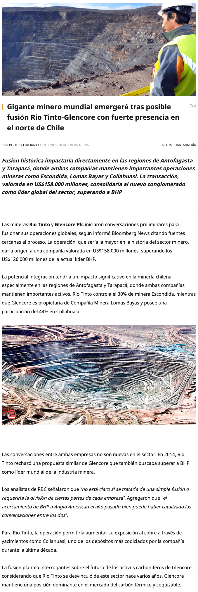 Potencial Mega Fusión en Minería: Rio Tinto y Glencore Exploran Crear el Gigante Global Más Grande del Sector - (redimin)