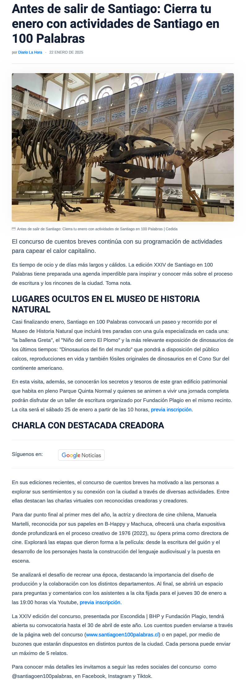 Antes de salir de Santiago: Cierra tu enero con actividades de Santiago en 100 Palabras - (La Hora)