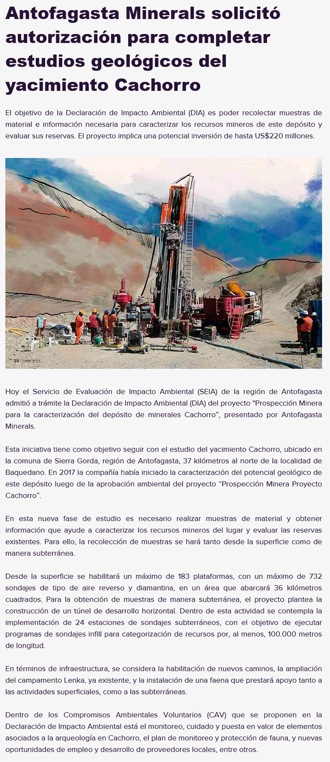 AMSA solicita autorización por estudios en yacimiento Cachorro - (El Mercurio de Antofagasta)