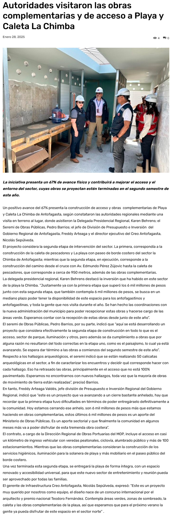 Presentan un 67% de avance: Autoridades visitaron obras en Playa y Caleta La Chimba - (antofagasta.tv)