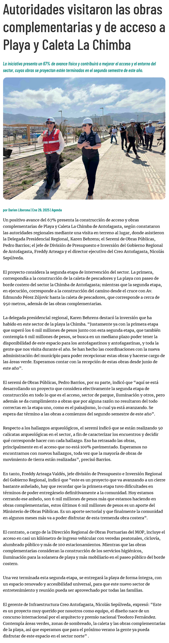 Antofagasta: Obras en Playa y Caleta La Chimba alcanzan 67% de avance y estarán listas en junio - (soyantofagasta)