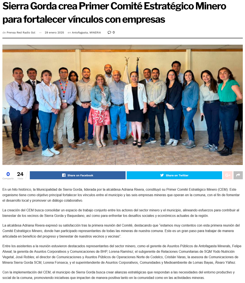 Sierra Gorda crea su primer Comité Estratégico Minero para fomentar el desarrollo local - (elreferente.cl)