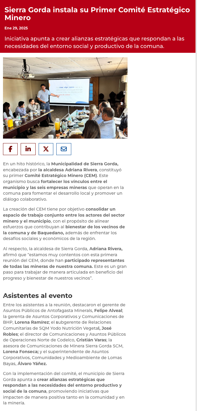 Sierra Gorda crea su primer Comité Estratégico Minero para fomentar el desarrollo local - (elreferente.cl)