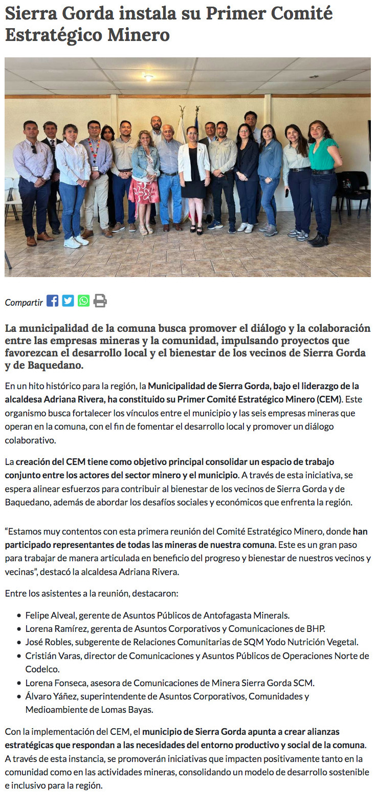 Sierra Gorda crea su primer Comité Estratégico Minero para fomentar el desarrollo local - (elreferente.cl)