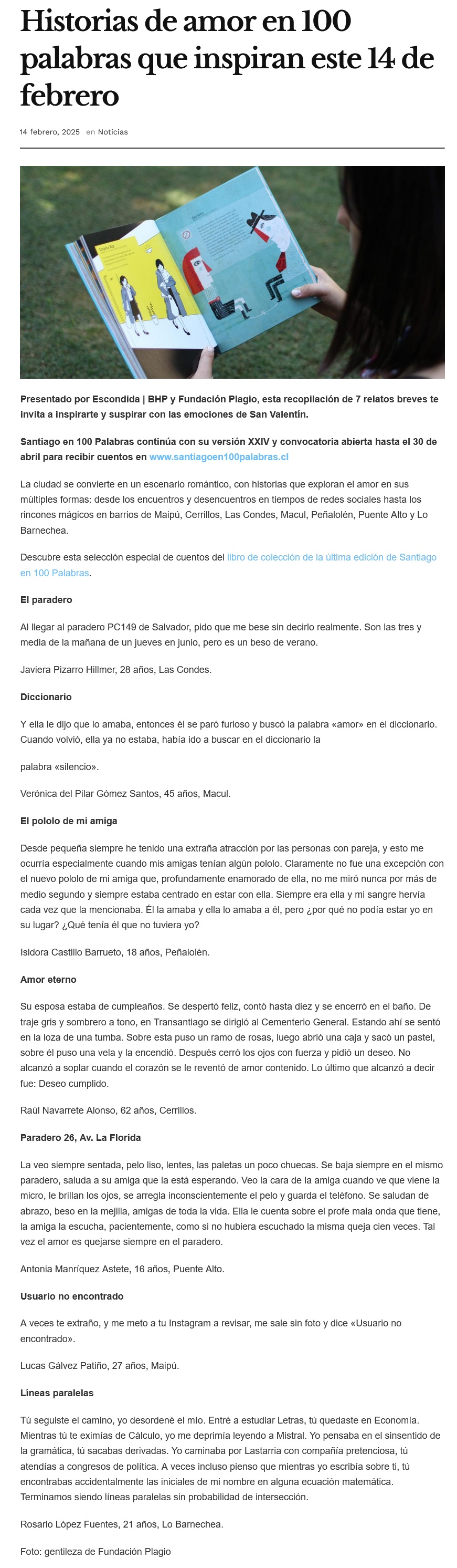 Historias breves y sentimientos profundos: 7 relatos de amor en Santiago en 100 palabras - (La Cuarta)