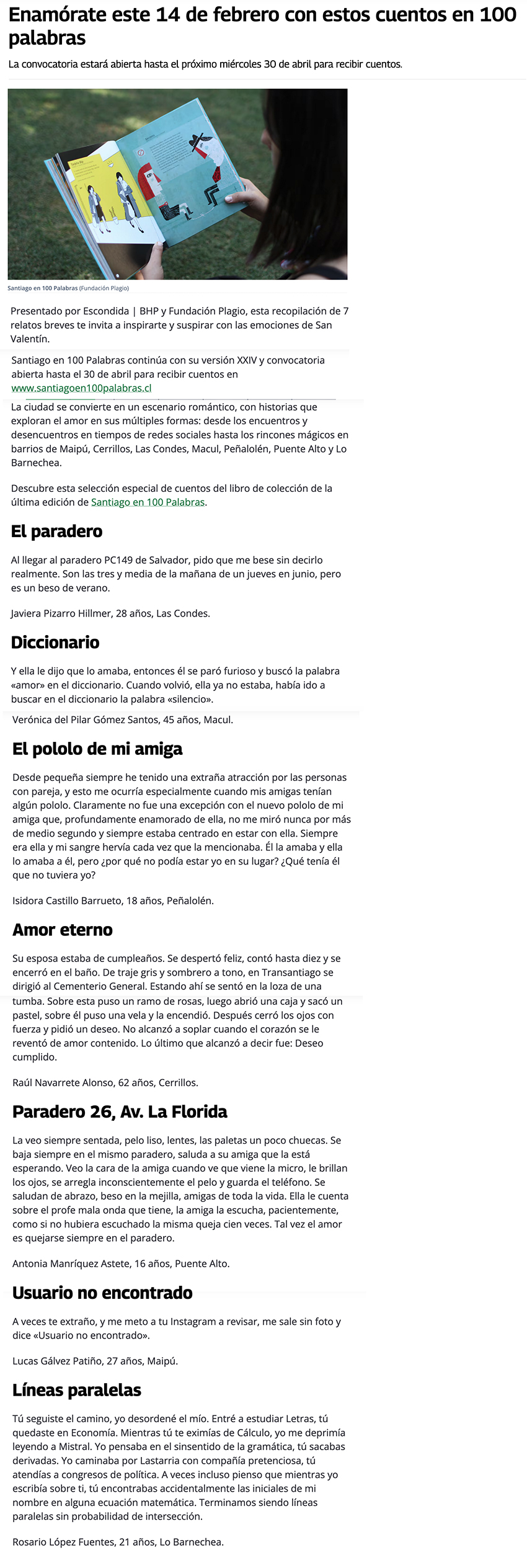 Historias breves y sentimientos profundos: 7 relatos de amor en Santiago en 100 palabras - (La Cuarta)
