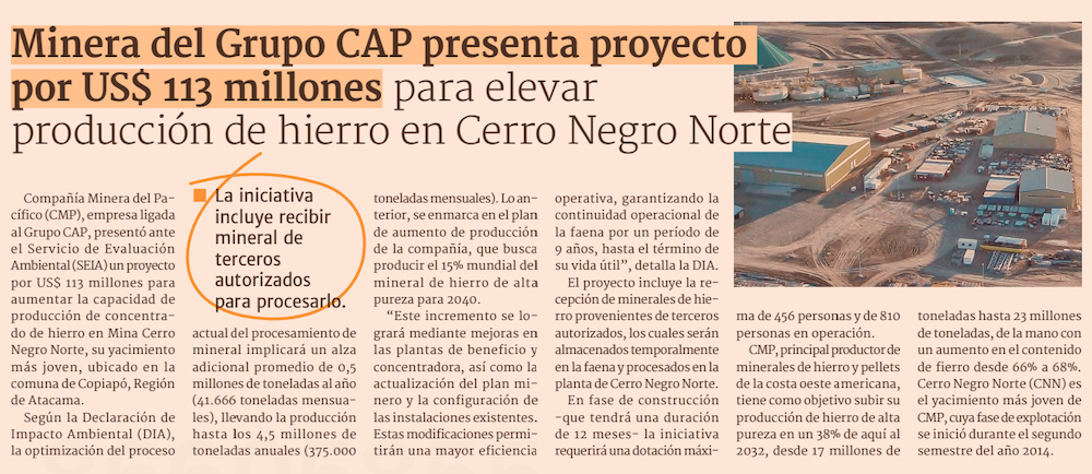 Filial minera de CAP pretende invertir más de US$100 millones para ampliar su mina Cerro Norte - (Pulso)
